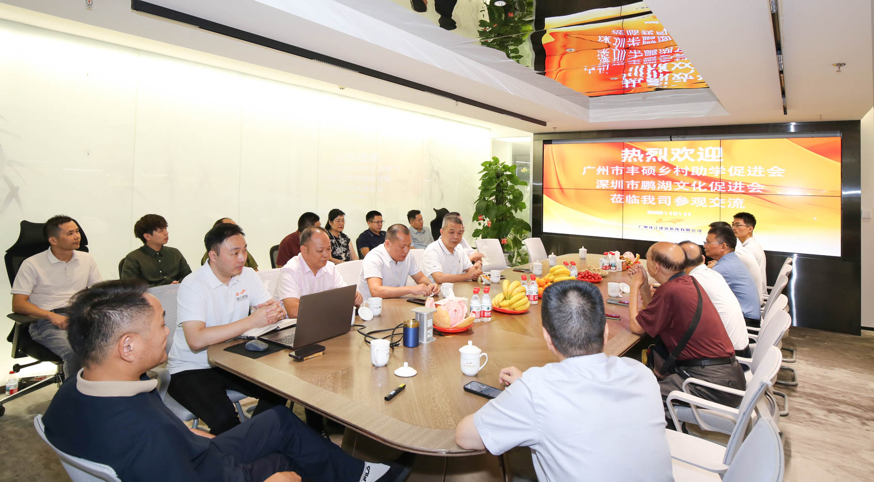 2025 年 10 月 11 日上午,赢博线上官网(集团)官方网站(下称“珠江装饰”)会议室宾朋满座、暖意融融。广州市丰硕乡村助学促进会、深圳市鹏湖文化促进会的主要领导及理事会成员一行莅临我司,共同研讨促进会下半年工作规划暨丰良鹏湖酒店项目的专题路演。